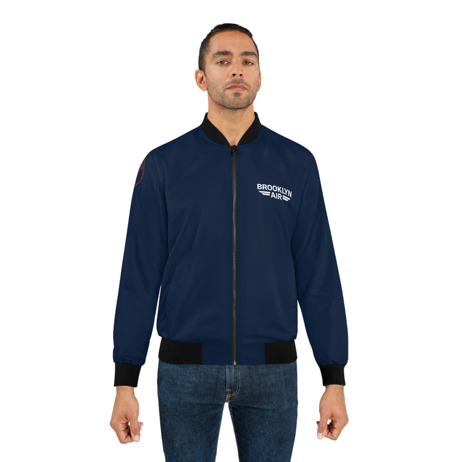 Slip into a jacket that feels like a midnight layover at a small city airport — calm, confident, and quietly stylish. This navy bomber wears a subtle Brooklyn Air emblem on the chest and a vintage-inspired roundel on the sleeve, letting you carry a bit of urban aviation nostalgia wherever you go. Lightweight but wind-resistant, it layers easily over tees or sweaters for brisk mornings, late-night walks, or impulsive weekend trips. The dark lining and black ribbed cuffs give it a tailored, street-ready silhouette that suits commuters, night-shift creatives, and city explorers who want functional warmth without shouting for attention.